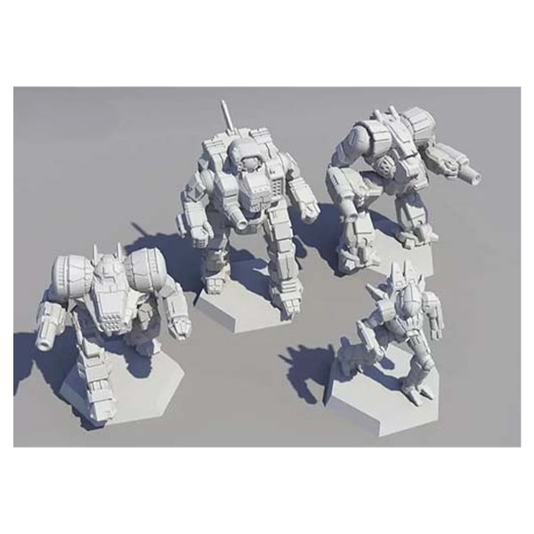 Each Inner Sphere ForcePack includes four high-quality, fully assembled BattleMechs, four Alpha Strike cards, and four pilot cards.