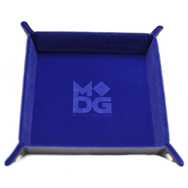 Velvet folding dice tray that folds down flat for easy transportation. Easily snap the trays into position for padded protection for both your dice and your gaming table.