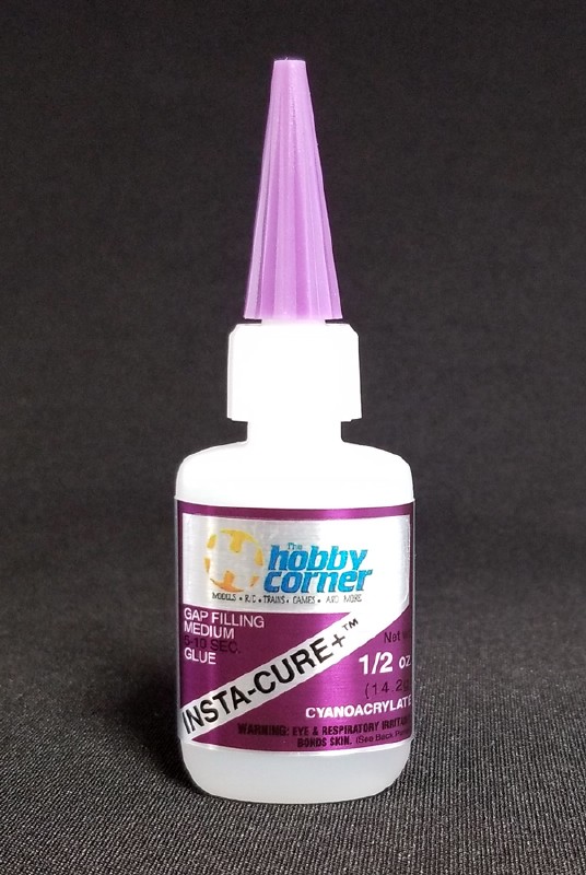 Hobby Corner Insta-Cure+ is a higher viscosity cyanoacrylate (CA) for loose fitting joints in which the adhesive must bridge gaps.