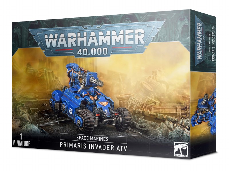 Firepower delivered fast - the Invader ATV gives you the guns you want, where you want. Armed with your choice of tank-scrapping multi melta or horde-munching onslaught gatling cannon, this rapid vehicle is ideal for accompanying your Outriders and other fast moving elements of your army or smashing into a squishy flank while the main body of your force holds the line.