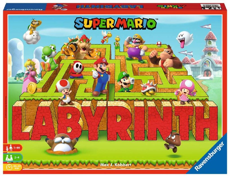 Labyrinth has been an international classic for 35 years! Now it features characters from the beloved Super Mario games. On your turn, you’ll shift the maze and move along the path, trying to get to the characters on your cards while blocking your opponents. Be the first to find all your characters and make it back to your starting place to win