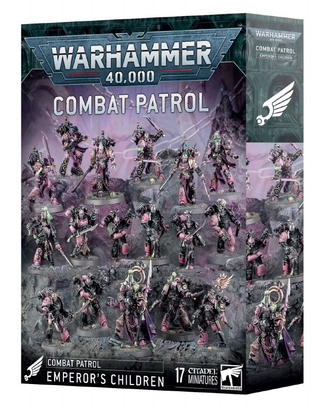 This box contains 17 plastic miniatures that represent a complete Callous Blades force for use in Combat Patrol games of Warhammer 40,000. It's an ideal way to start an Emperor's Children army, or easily add to an existing collection, and save money compared to buying the contents separately.