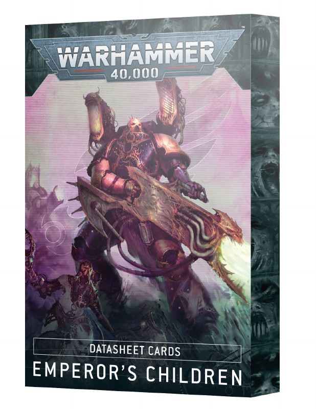 This set of 26 cards will help you keep track of your Emperor's Children units in games of Warhammer 40,000. There are individual datasheet cards for every unit - detailing their profiles, wargear, options, and special abilities. They are an ideal way to easily check key information in the heat of battle. You'll also find a reference card for the Emperor's Children army rule and special datasheet cards for use in Combat Patrol games.
