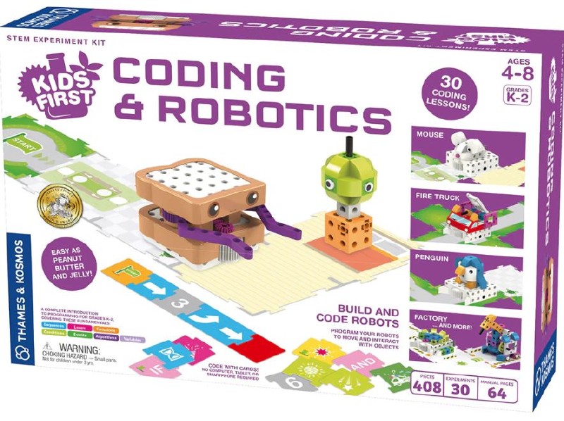 This robot kit also teaches physical engineering and problem solving skills through a series of building and coding lessons. The 30 lessons are aligned with standards for computer science education developed by the Computer Science Teachers Association (CSTA) and the International Society for Technology (ISTE) Education, as well as courses from Code.org. The lessons progress in complexity through the illustrated manual, allowing the kit to be appropriate for a child as young as four years with help from an adult and as old as eight years. The lessons cover these six key areas in coding: sequencing, loops, events, conditionals, functions, and variables.