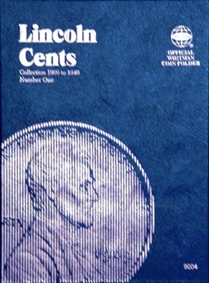 Whitman brand, folder opens flat for all-at-once viewing and includes data pertaining to the coins it holds. Lincoln #1 1909-1940 90 openings. P, D, S.