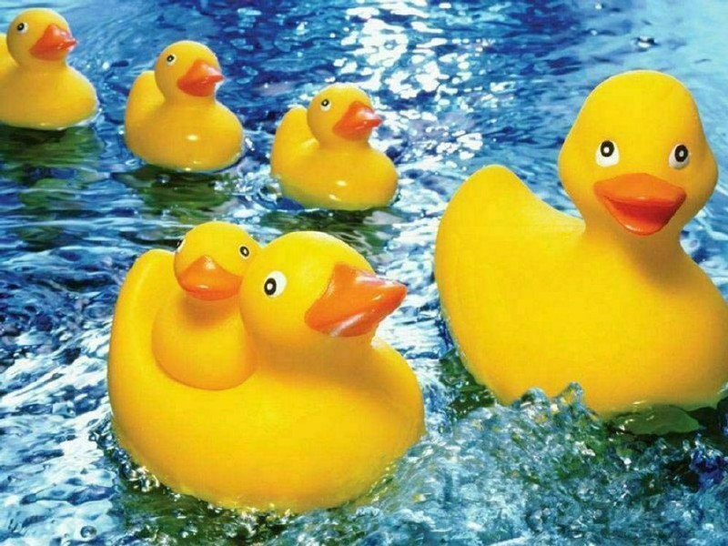 A whole family of your childhood bath toy! The clarity of this bright image makes you want to stand back so you don't get splashed!