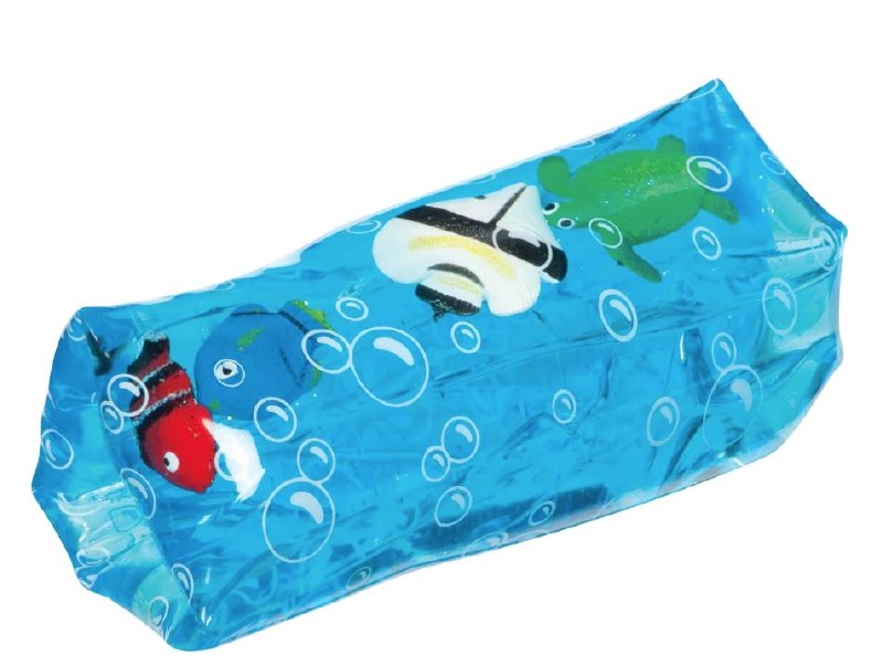 Fish and a turtle swim back and forth in this 5in bubble printed water snake. Try to hold on, but if you squeeze too tightly, it might slip right out of your hands! 5yr plus.