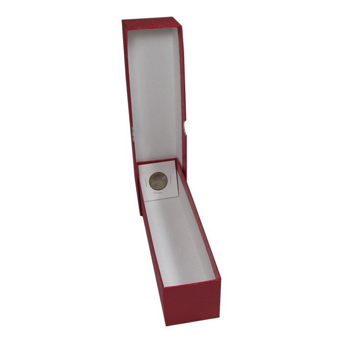 Manufactured with a high quality textured exterior, the popular Guardhouse single row 2x2 box features re-enforced tape filaments, which give the box added strength and durability. Unlike other boxes, Guardhouse coin storage boxes are constructed with a high quality interior white board that is wear resistant and will not rub off into fine paper dust residue over time. The red standard 2x2 Guardhouse box is designed to fully enclose the paper coin holders, and is ideal for storing and organizing coins.
