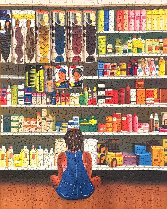 Wonderland captures the magic and nostalgia of a universal cultural experience - the Beauty Supply Store. This 500-piece puzzle celebrates a space curated for us, where shelves of vibrant products and familiar faces evoke the joy and creativity of a kid in a candy shop.